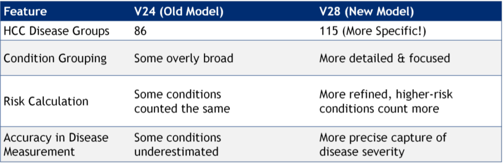 However, as healthcare delivery and patient needs have evolved, so must the tools used to assess patient risk. CMS-HCC Model Version 28 represents a more refined approach to coding, expanding on the previous system by incorporating a broader range of conditions and more precise categories. This update reflects an enhanced understanding of the complex needs of Medicare beneficiaries, emphasizing chronic disease management, comorbid conditions, and newer insights into healthcare outcomes. With HCC V28, healthcare professionals can more accurately document the severity of patients’ conditions, allowing for a better representation of the true risks associated with caring for these individuals.