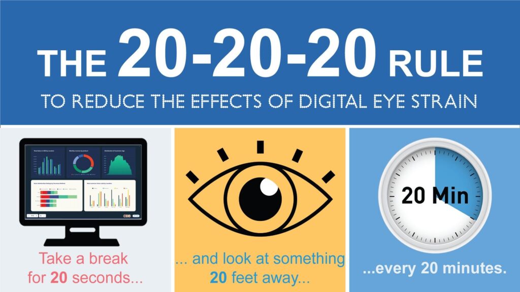 Every 20 minutes, look at something at least 20 feet away for at least 20 seconds to help reduce eye strain!